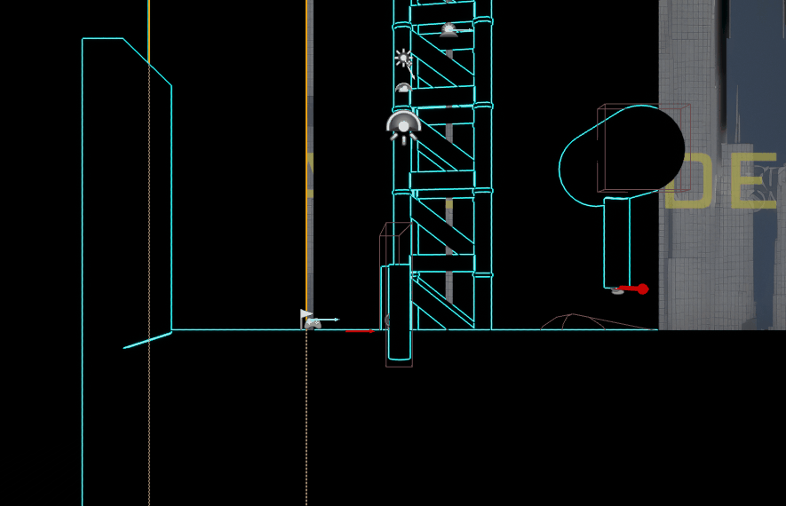 · It was difficult to see the player character behind all the visual noise created by the wireframe material I was using.