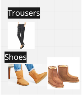 Underneath the clothes sticky note, I broke it down into five sub-sections, Headwear, Coat, Accessories, Trousers and Shoes.